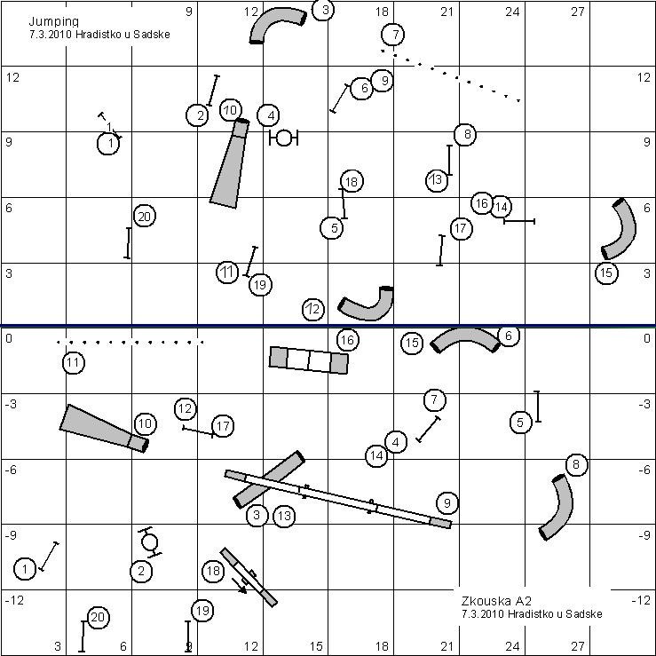 ...a také jsem si trošku pohrála s Course desinerem, tak se můžete podívat na "napodobeniny" parkurů, které jsme běhali. Podotýkám, že mohou být mírné odchylky od reality:-))